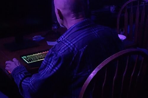It wouldn’t wake up! Ima tap tap tappin on the keys, and click, click, clickin, the mouse. I reached up over the monitor to hit the power button, it tipped forward and I felt a release… Oh, what was that? How come it won’t come on? Something came unplugged! So I look and I can’t see, it’s kind of dark and I can’t … Oh, there it is… The power transformer came unplugged. Ok, sit down. Sip some coffee and wait. It always feels like forever waiting for a computer to reboot.