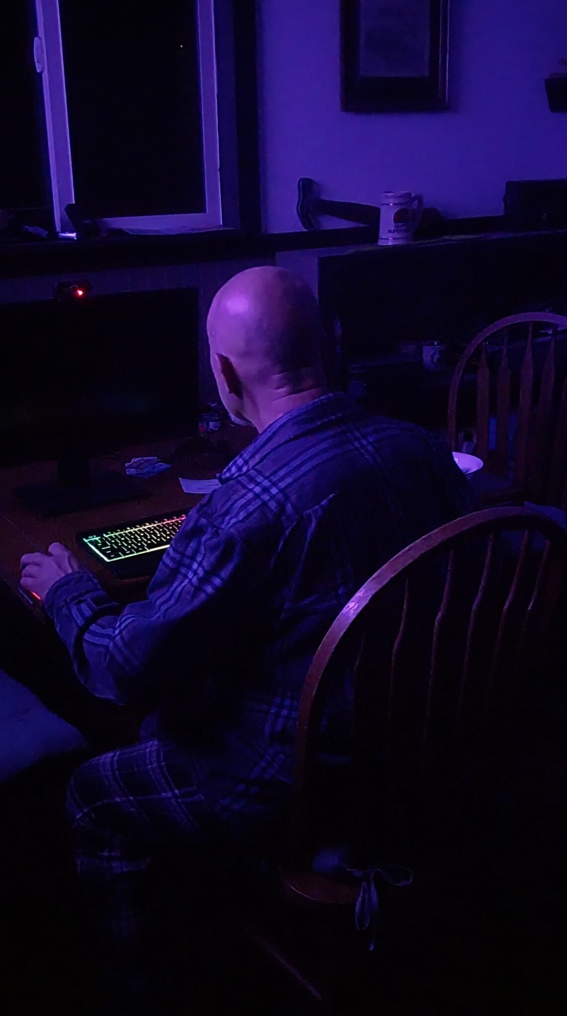 It wouldn’t wake up! Ima tap tap tappin on the keys, and click, click, clickin, the mouse. I reached up over the monitor to hit the power button, it tipped forward and I felt a release… Oh, what was that? How come it won’t come on? Something came unplugged! So I look and I can’t see, it’s kind of dark and I can’t … Oh, there it is… The power transformer came unplugged. Ok, sit down. Sip some coffee and wait. It always feels like forever waiting for a computer to reboot.