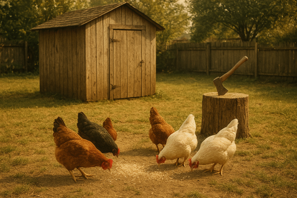 All summer, those little chicks grew up in our backyard. Every morning and evening, I’d scatter feed across the grass and watch them rush in, pecking excitedly at their meal. Sometimes I’d sit and count them as they scratched and clucked, each one developing its own personality—the brave, the curious, the shy. Taking care of them was my daily chore, but it never felt like work. It was just part of what family did together, turning ordinary days into lasting memories. By late August, those fluffy chicks had become big and fat, well-fed from the grain and scraps I’d tossed to them with pride.